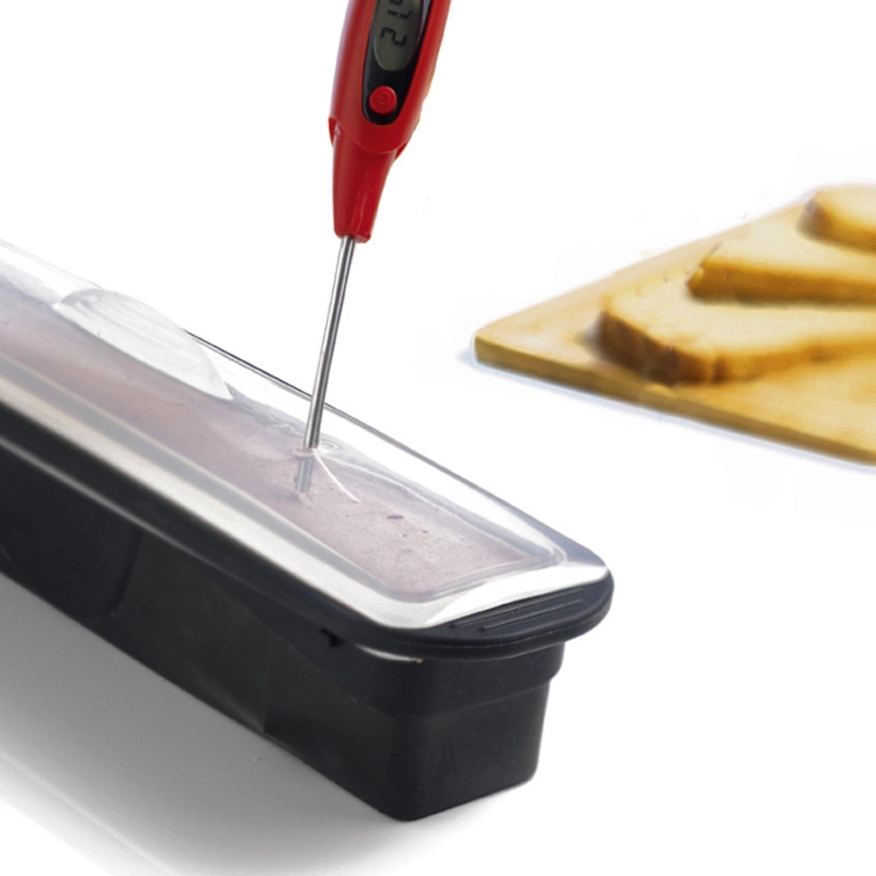Stelaż można zdjąć, żeby umyć formę. Pokrywa ma specjalny otwór na odprowadzenie pary oraz do włożenia termometru do pomiaru temperatury pieczeni. Silikon jest wytrzymały na niskie i wysokie temperatury (od -40 do 220 stopni).