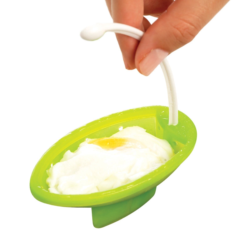 A jednocześnie zachowują kształt jajka, które nie rozpływa się po garnku. Jajko ma perfekcyjny kształt i smak, w pojemnikach nie ma żadnych metalowych części, które mogłyby zostawiać posmak. Zestaw można połączyć na specjalnym stojaku i gotować jednocześnie 4 jajka, co znacznie skraca proces przygotowania. Silikon, z którego wykonane są pojemniki jest odporny na wysoką temperaturę (do 300 stopni). Można myć w zmywarce.