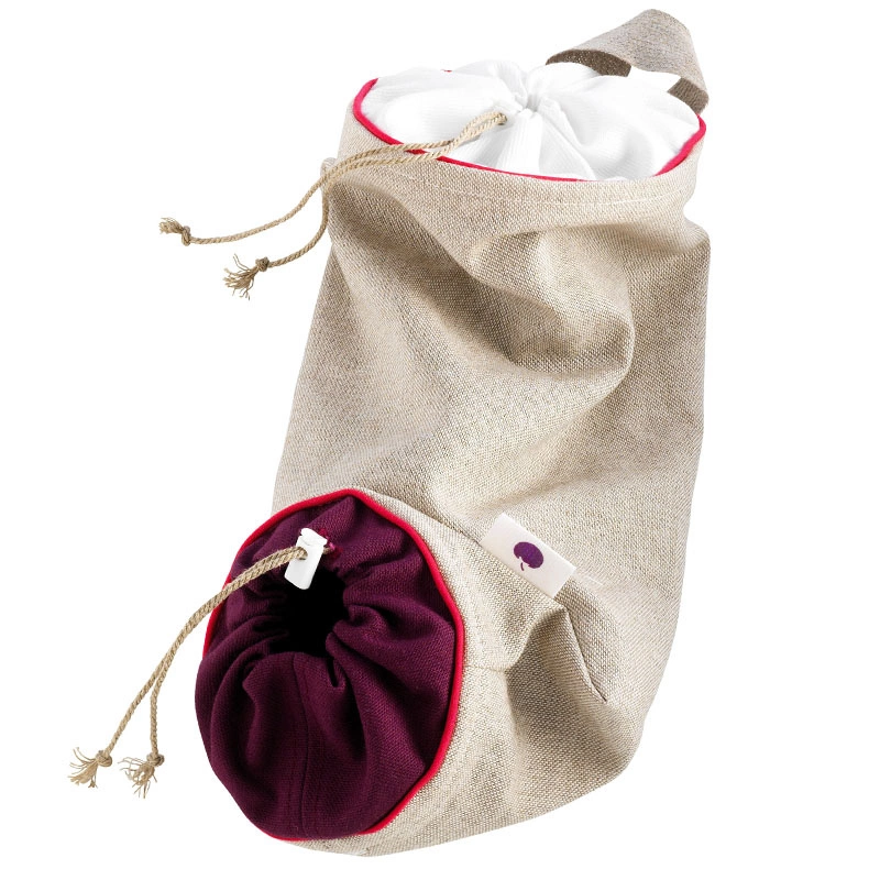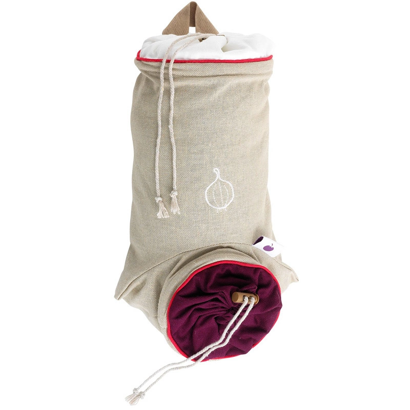 Mastrad - TORBA DO PRZECHOWYWANIA CEBULIszara z wykończeniem w kolorze bordowym