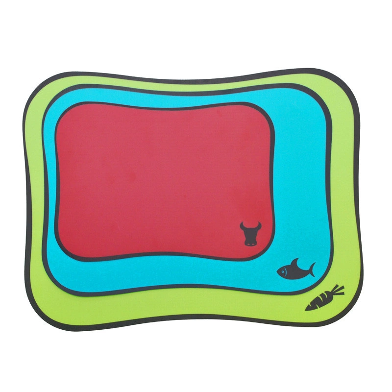 Zestaw 3 kolorowych mat do krojenia FLEXI&COLORS. Każda mata ma inny kolor oraz symbol, który ułatwia rozpoznania do czego może być przeznaczona dana mata.