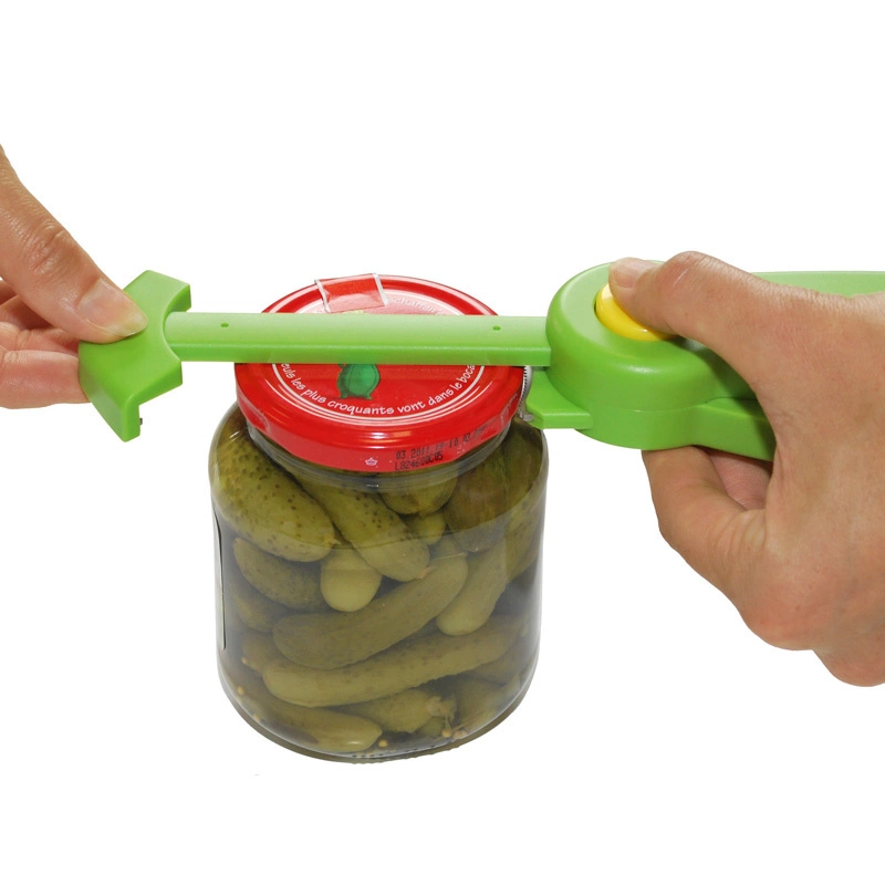 Dzięki zastosowanemu w nim opatentowanemu systemowi otwieranie jest proste i nie wymaga żadnego wysiłku. Sposób użycia otwieracza: przyciskając duży żółty przycisk na urządzeniu wysunąć górną część.
