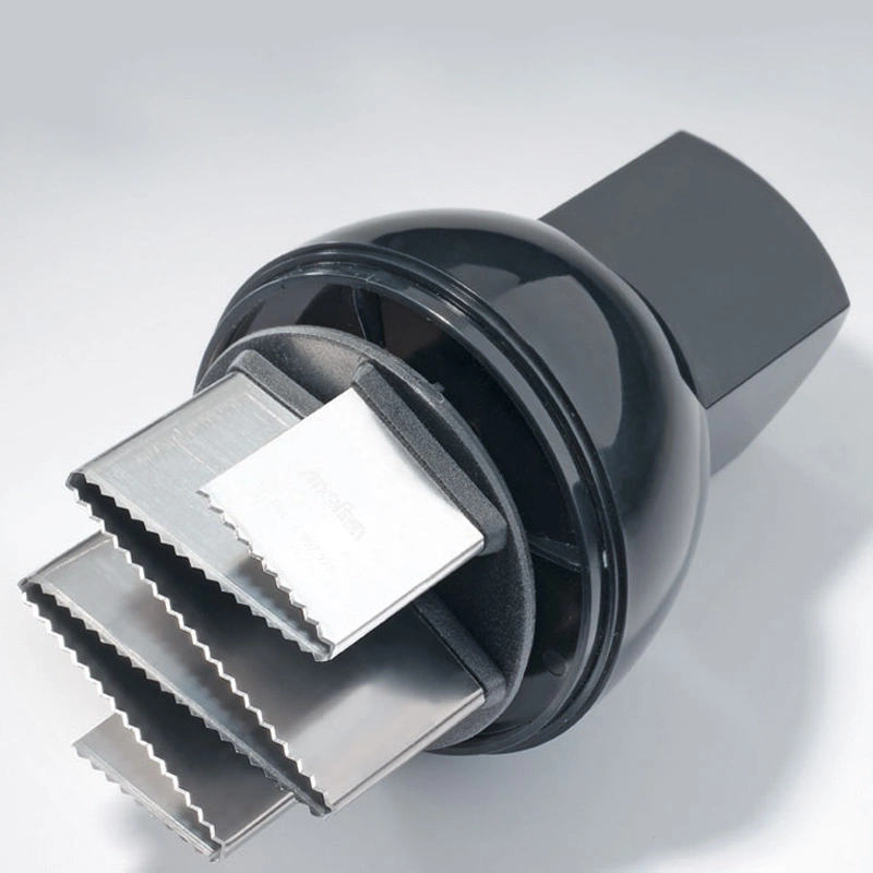 Na wewnętrznej ściance stalowego pojemnika została rozrysowana miarka, która ułatwia odmierzanie składników, poczynając od 100 ml. Specjalnie ukształtowane schodkowe ostrze ma na końcu ząbki, które łatwo rozkruszą kostki lodu.