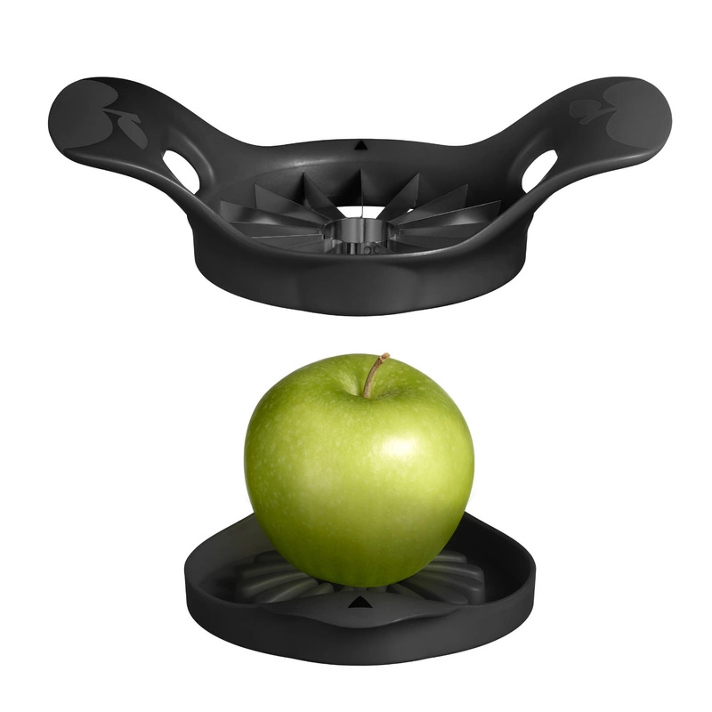Wystarczy kilka razy przekręcić górną cześć tarki, aby zebrać starte wiórki na dolnej tatce-zatyczce .