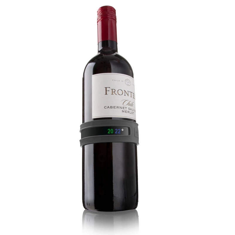 Wystarczy jeden „click”, a termometr jest już wokół butelki i zaczyna odmierzać temperaturę trunku. Pod wpływem temperatury materiał termochromowy, z którego został wykonany termometr, zmienia kolor i wyświetla temperaturę w skali Celsjusza.