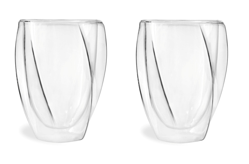 NOWOŚĆ OD VIALLI DESIGN Zestaw dwóch szklanek do kawy lub drinków 300 ml z serii CRISTALLO. Niespotykany, nowoczesny kształt wzmacnia efekt wizualny. Produkt został wykonany ręcznie z najwyższej jakości szkła borokrzemowego. Naczynie, dzięki podwójnym ściankom nie tylko utrzymuje odpowiednią temperaturę napoju na dłużej, ale chroni także przed poparzeniem. Możemy trzymać szklankę bez obaw w dłoni nawet, gdy pijemy ciepłą kawę. Idealnie sprawdzi się również przy serwowaniu zimnych napojów i drinków.