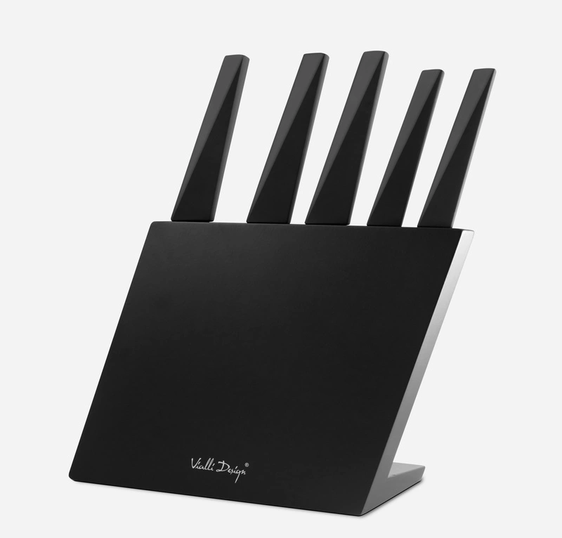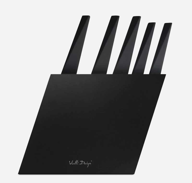 Vialli Design - Zestaw 5 noży w bloku VOLO z powłoką nieprzywierającą czarny