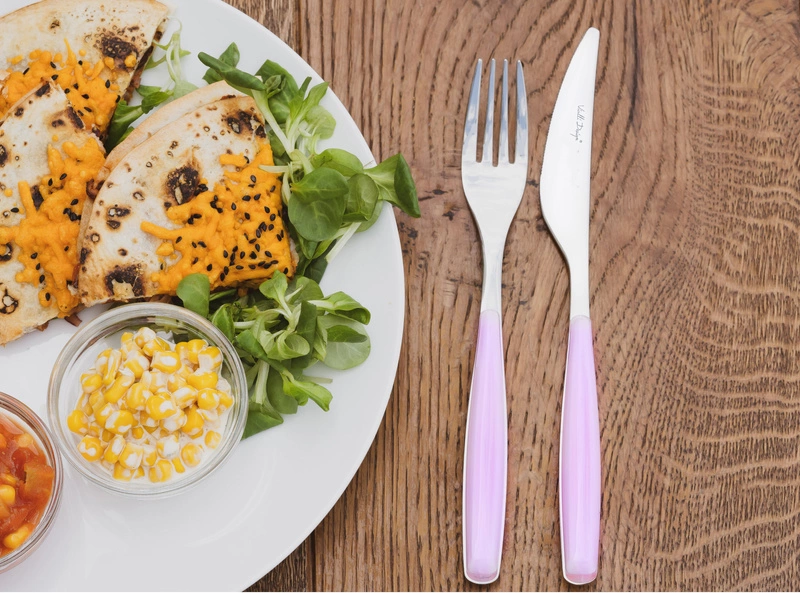 24-elementowy zestaw funkcjonalnych i użytecznych sztućców Diva w kolorze różowym to nowość od Vialli Design. Sztućce Diva to udane połączenie klasycznej formy z nowoczesnym designem, dlatego znakomicie będą się prezentować zarówno w tradycyjnie urządzonych jak i modernistycznych wnętrzach. Sztućce zostały wykonane z antyalergicznej stali nierdzewnej, natomiast ergonomiczne rękojeści z najwyższej jakości połyskującego tworzywa sztucznego. Sztućce świetnie nadają się do codziennego użytku, ale też miło zaskoczą Twoich gości podczas uroczystej kolacji. Diva to wysokiej klasy, elegancki i efektowny dodatek, zapakowany w ozdobne pudełko - znakomicie sprawdzi się jako gustowny prezent na urodziny, ślub czy inną ważną okazję. Sztućce można myć w zmywarce. Produkt posiada certyfikat jakości oraz certyfikat dopuszczający do kontaktu z żywnością. Diva to sztućce, które spełniają walory użytkowe jak i estetyczne, nieodzowny i uniwersalny dodatek w każdej kuchni i na Twoim stole. W skład zestawu wchodzi: 6 łyżek obiadowych 6 noży obiadowych 6 widelców obiadowych 6 łyżeczek do herbaty