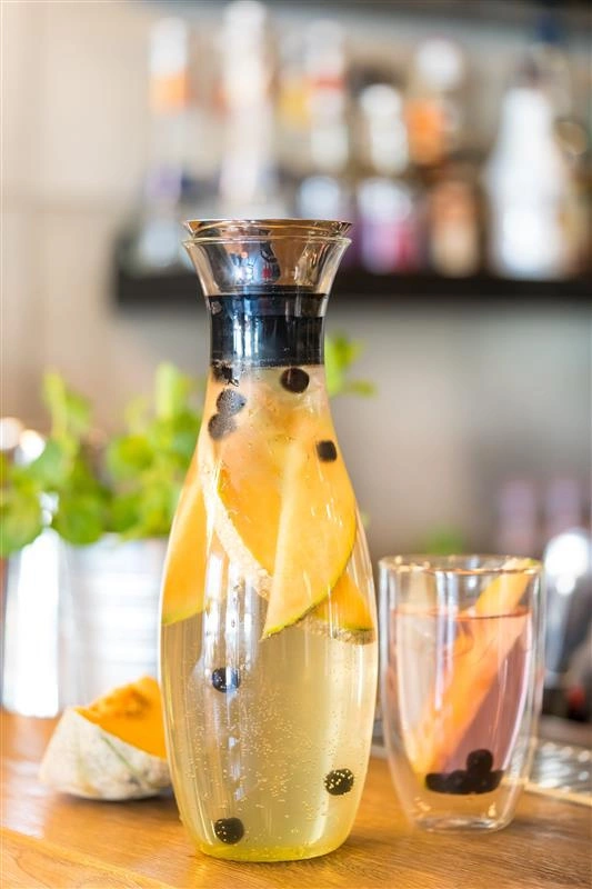 Stylowa i praktyczna karafka z kolekcji Amo o pojemności 1300 ml marki Vialli Design. Wyposażona została w specjalny system Drip-Free, przeciwdziałający cieknięciu zawarości po ściankach podczas nalewania. Dodatkowo korek posiada sitko zapobiegające przedostaniu się np. resztek z cytryny do napoju, a silikonowe uszczelnienie zapobiegnie jego wypadnięciu podczas przechylania naczynia. Karafka została wykonana ręcznie z najwyższej jakości szkła, oprócz fukcji użytecznej będzie również niewątpliwą ozdoba każdego stołu czy też doskonałym prezentem.