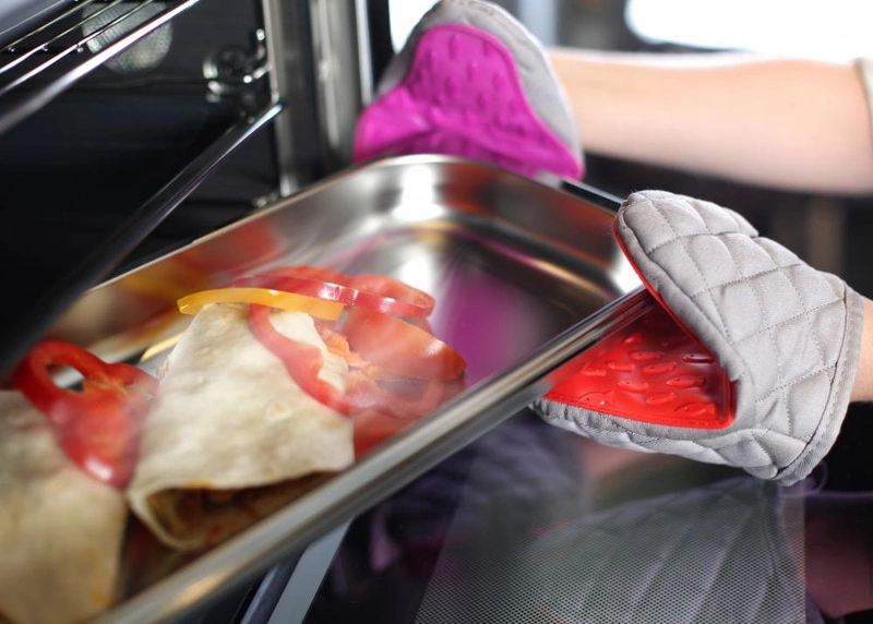 Praktyczna, krótka rękawica kuchenna Livio marki Vialli Design. Rękawica została wykonana ze 100%-owej bawełny. Wewnętrzna część rękawicy pokryta jest grubą warstwą silikonu, która jest odporna na temperatury do 260 stopni Celsjusza. Pikowana rękawica to niezbędne akcesorium w każdej kuchni - szybko można ją zarówno włożyć na dłoń jak i zdjąć. Niezastąpiona w kuchni!