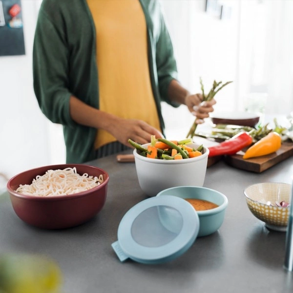 Zestaw 3 misek z serii Cirqula marki Mepal. Każda z misek może pełnić również funkcję szczelnego pojemnika na lunch, zupy, kremy czy sosy. Świetnie sprawdzi się również podczas przyrządzania różnorakich dań (np sałatek, przekąsek, do miksowania ciasta), jak również do ich serwowania. Miski po zdjęciu okrywy możemy użyć jej w mikrofali, można je również zamrażać i myć w zmywarce. Produkt wolny od szkodliwych dla zdrowia substancji (BPA free) Wymiary; 500ml (13,5 x 12,5 x 5,8 cm) 1000ml (16,9 x 15,9 x 6,8 cm) 2000ml (20,2 x 19,2 x 7,8 cm) Ten wysokiej jakości produkt łączy funkcje praktyczne w estetycznymi, zapakowany w eleganckie pudełko znakomicie sprawdzi się również jako prezent.
