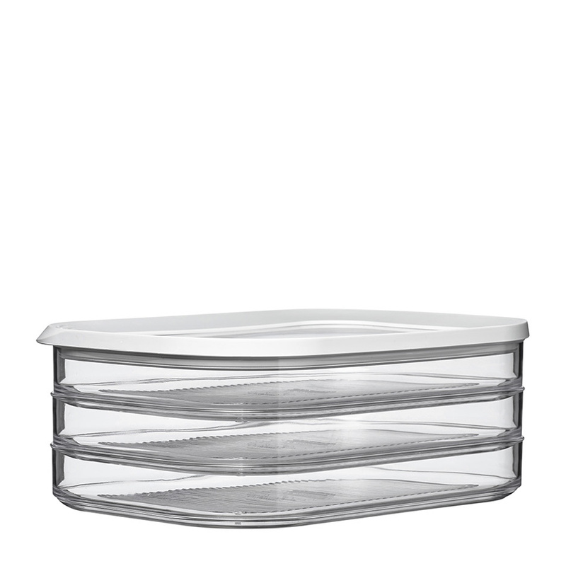 Nowoczesny i praktyczny pojemnik na wędliny holenderskiej marki Mepal. Przezroczysta pokrywa umożliwia kontrolowanie zawartości bez potrzeby otwierania. Pojemnik składa się z 3 części o wysokości 2,5 cm a trzy poziomy pozwalają zaoszczędzić i zagospodarować miejsce w lodówce. Dolna część to profilowana i perforowana tacka, która separuje żywność od zbierającej się na dnie wilgoci, co sprzyja przedłużeniu przydatności do spożycia przechowywanych produktów oraz ułatwia ich wyciąganie. Pojemnik jest higieniczny i łatwy w czyszczeniu, szczelny - co zapobiega rozproszeniu zapachów na inne artykuły spożywcze. Produkt łączy nowoczesny design z praktycznym zastosowaniem. Pojemnik nadaje się do mycia w zmywarce. Wszystkie produkty Mepal wolne są od BPA oraz wykonane z materiałów nieszkodliwych dla zdrowia. Wyprodukowano w Holandii.