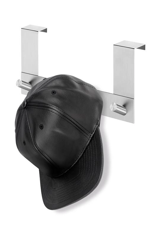Wieszak na drzwi składający się z 4 hazyków z serii Exit, firmy Zack. Wykonany ze szczotkowanej stali nierdzewnej.