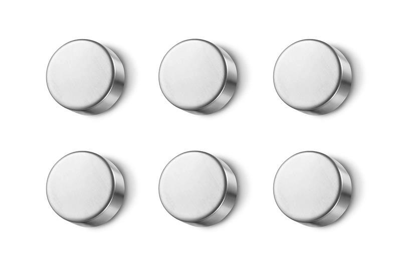 Zestaw 6 sztuk magnesów do tablic magnetycznych Cult  uznanej niemieckiej marki Zack. Wykonane z matowej stali nierdzewnej .