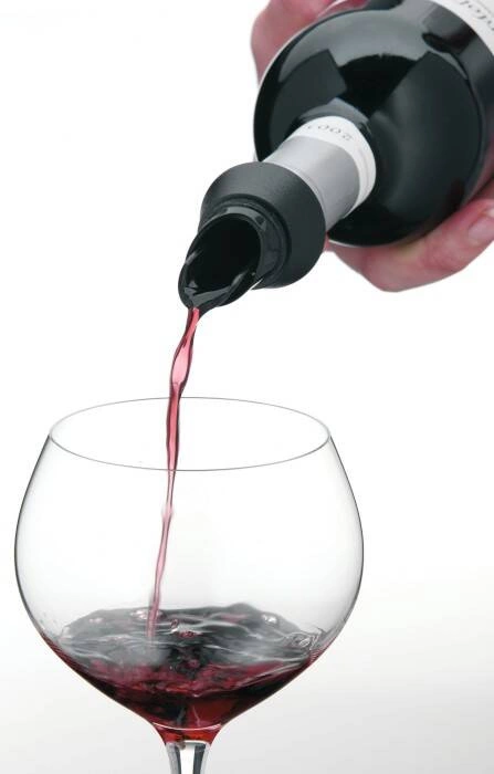 - lejek posiada zintegrowaną nakładkę, która szczelnie zamknie butelkę wina, zarazem przedłużając jego świeżość