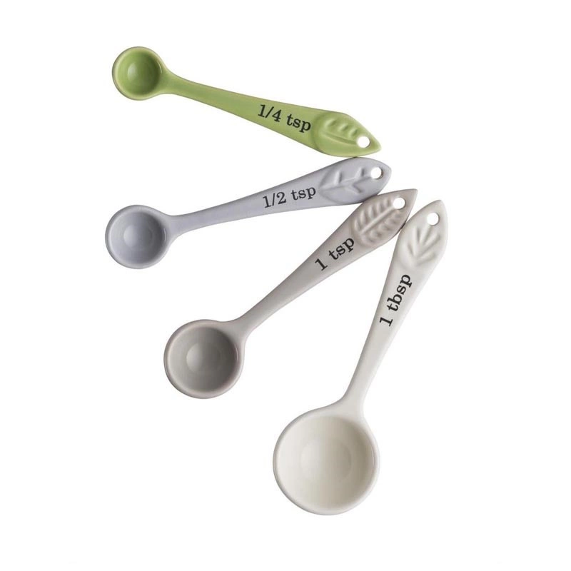 - pojemności: 1 łyżka stołowa, 1 łyżeczka, ½ łyżeczki oraz ¼ łyżeczki,