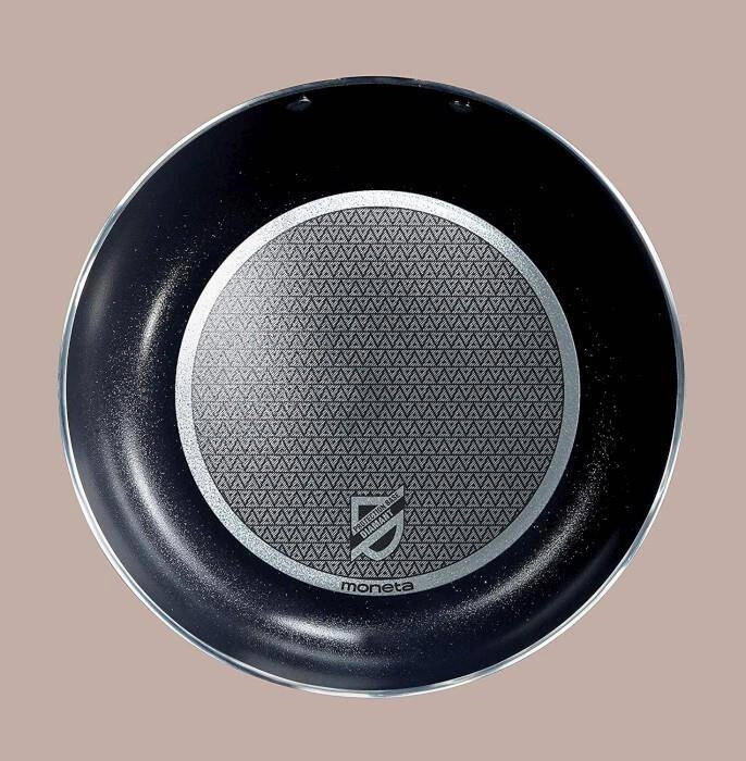 - wewnętrzna powierzchnia pokryta powłoką Protection-base® z mikrokryształami zapewniająca lepsze gotowanie, bardzo trwała i 2x bardziej odporna na uszkodzenia oraz ścieranie,