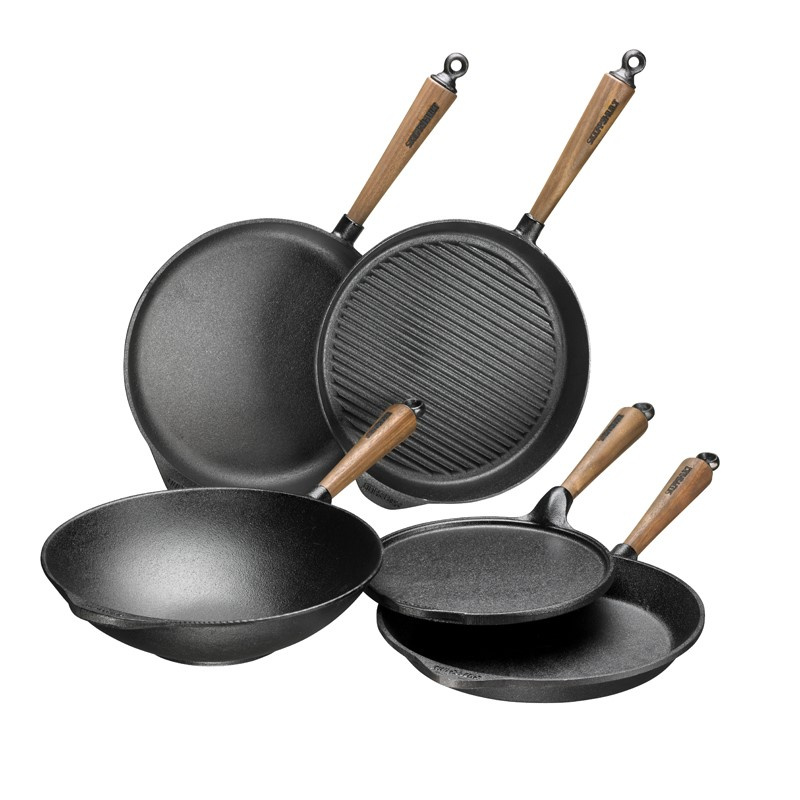 Kiedy po raz pierwszy mamy do czynienia z produktem marki Skeppshult, od razu zwracamy uwagę na jego wagę. Z pewnością ogranicza ona możliwości manualne, ale ma również swoje zalety. Każde naczynie marki Skeppshult ma powierzchnię o grubości 5 mm. Zapewnia to równoległy rozkład ciepła podczas nagrzewania oraz zapobiega ochładzaniu się patelni podczas dodawania żywności. Innym aspektem jest odporność żeliwnych produktów na wysokie temperatury: dno patelni jest wklęsłe zapobiega to odkształceniu tak charakterystycznemu dla patelni o cienkim dnie np. teflonowych. Wszystkie naczynia marki Skeppshult nadają się do każdego rodzaju kuchenek, w tym indukcyjnych.
