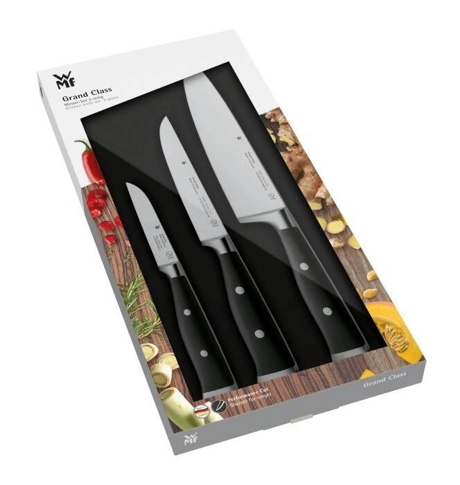 - w komplecie: nóż do obierania (9 cm), nóż uniwersalny (14 cm), nóż szefa kuchni (20 cm),