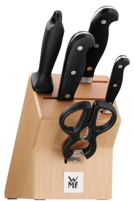 WMF-Blok z kompletem 3 noży,ostrzałką i nożyczkami