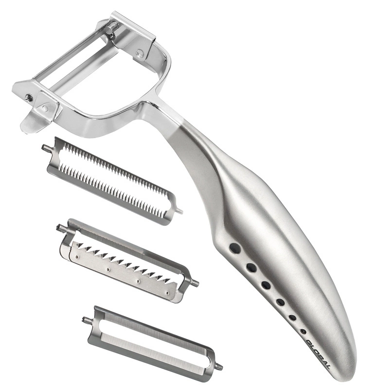 Funkcjonalna obieraczka z wymiennymi ostrzami, która jest wspaniałym udogodnieniem dla szefów kuchni. Innowacyjne narzędzie projektu Komina Yamady posiada trzy różne rodzaje ostrzy: