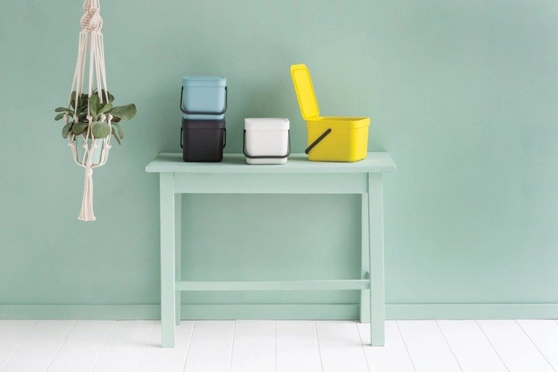 Poręczny kosz o niedużej pojemności 6 l idealnie sprawdzi się do zbierania odpadów organicznych na kuchennym blacie.