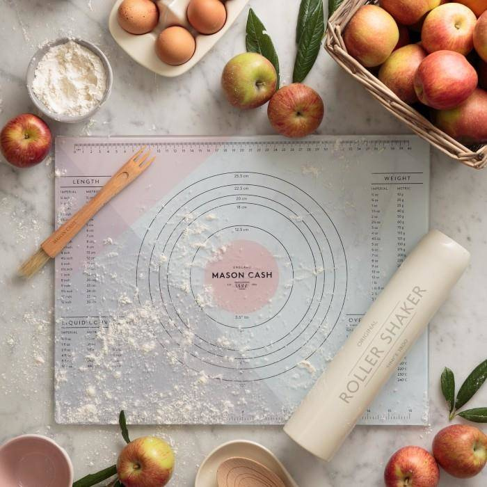 - na jej powierzchni: skala do ciasta w kształcie koła, przeliczniki wag, miar, pojemności i temperatur,