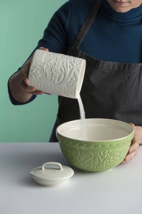 - miska wykonana z kamionki, do mieszania ciasta, - z zewnątrz tłoczone wzory z motywami leśnymi, - grubszy brzeg do trzymania ręką, - nadaje się do kuchenki mikrofalowej, - można myć w zmywarce. Wymiary: 21 x 10 cm (śr. x wys.) Pojemność: 1 l Kolor: kremowy, zielony Materiał: kamionka Kolekcja: In The Forest