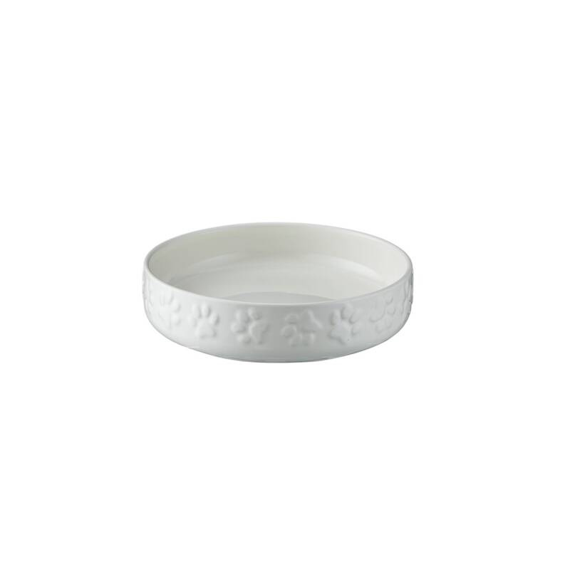 - miska na karmę dla kota, - wykonana z trwałej kamionki, - z zewnątrz tłoczone łapki kotka, - stabilna i trudna do przewrócenia, - można myć w zmywarce. Wymiary: 13 x 3,2 cm (śr. x wys.) Kolor: biały Materiał: kamionka Kolekcja: Pet Ware
