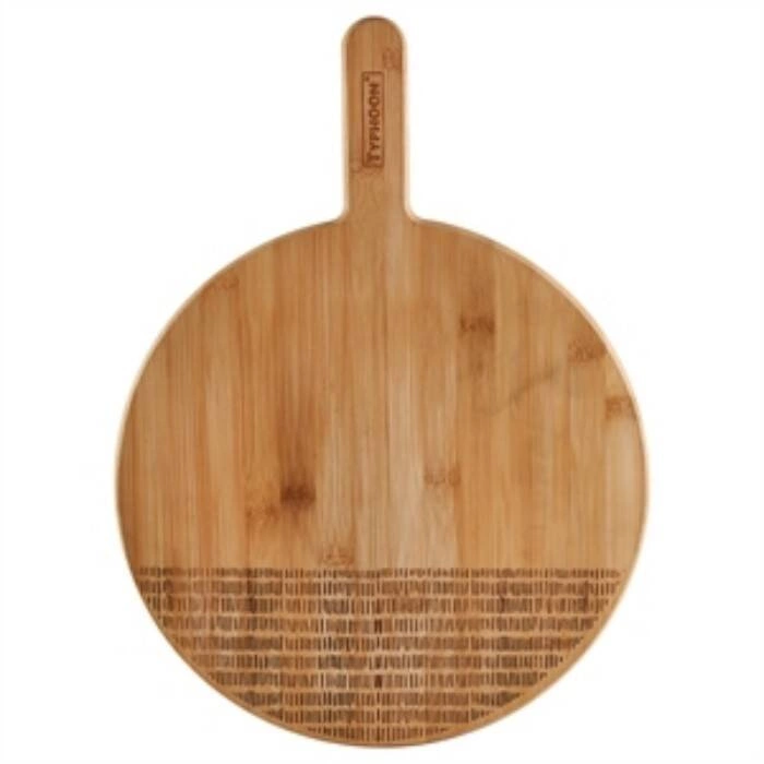 - deska do serwowania pizzy lub tarty, - wykonana z drewna bambusa, - z uchwytem do przenoszenia, - w dolnej części zdobiona wzorkiem, - należy myć ręcznie. Wymiary: 1.5 x 45 x 33 cm (gr. x szer. x dł.) Materiał: bambus Kolor: beżowy Kolekcja: Monochrome