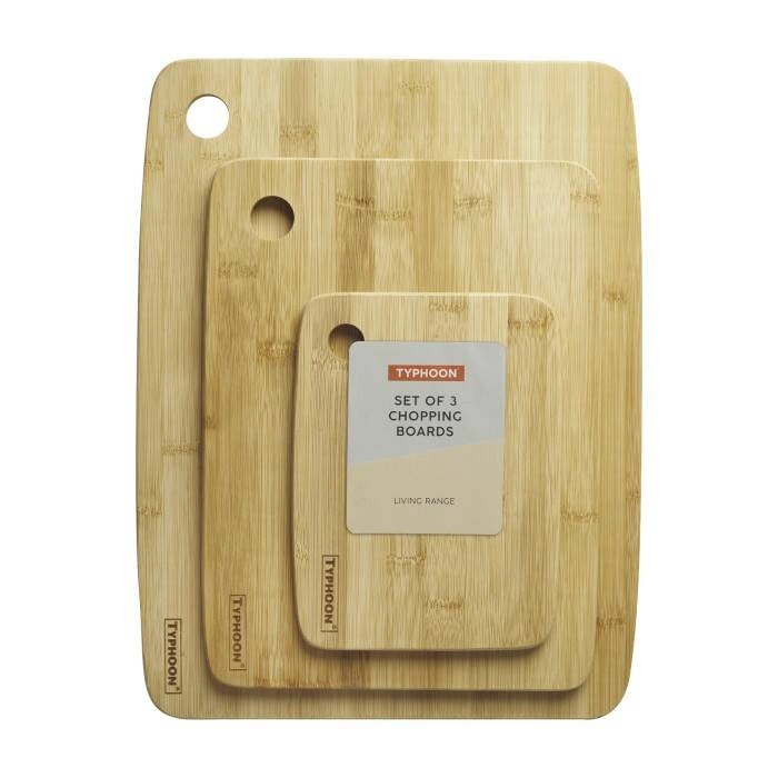 - zestaw 3 desek do serwowania np. serów, wędlin, owoców itp., - wykonane z drewna bambusa, - z uchwytami do zawieszenia, - należy myć ręcznie. Wymiary: - 15 x 20 cm (szer. x dł.), - 22 x 30 cm (szer. x dł.), - 29 x 38 cm (szer. x dł.). Materiał: bambus Kolor: beżowy Kolekcja: Living
