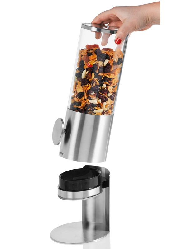 Dyspenser DEPOSITO może być wykorzystywany do różnego rodzaju płatków kukurydzianych i musli, ryżu, pszenicy, cukierków, orzechów i innych sypkich produktów spożywczych.