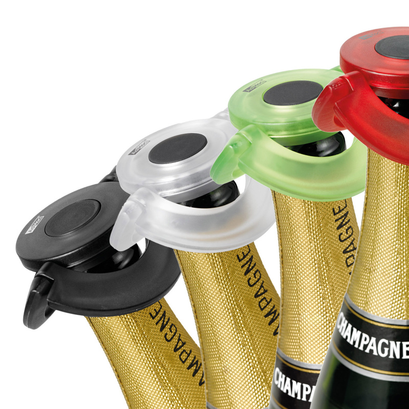 Korek do szampana GUSTO BLACK ma bardzo niski, płaski profil, co sprawia, że idealnie sprawdzi się w przechowywaniu butelek w lodówce.