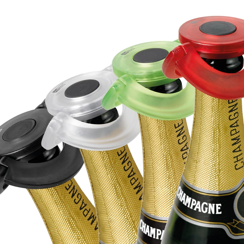 Korek do szampana GUSTO CLEAR ma bardzo niski, płaski profil, co sprawia, że idealnie sprawdzi się w przechowywaniu butelek w lodówce.