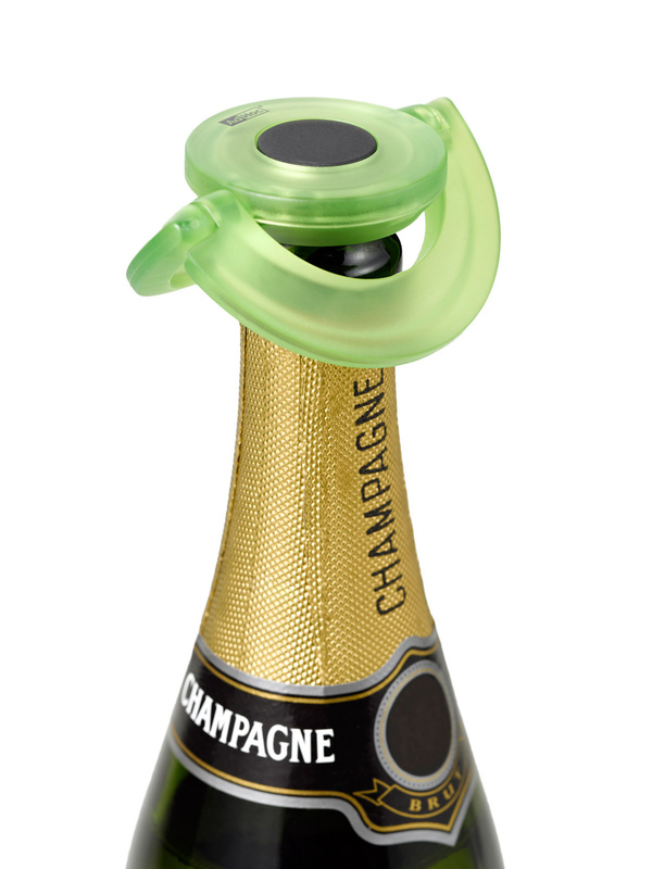 Korek do szampana GUSTO GREEN ma bardzo niski, płaski profil, co sprawia, że idealnie sprawdzi się w przechowywaniu butelek w lodówce.