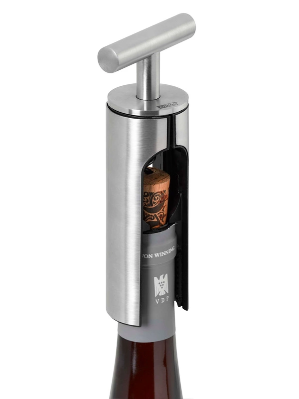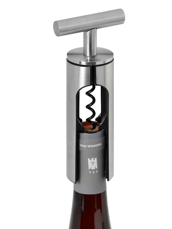 Dzięki zasadzie samo wyciągania korkociąg CHAMP umożliwia łatwe wyjęcie korka z butelki za pomocą prostego obracania.