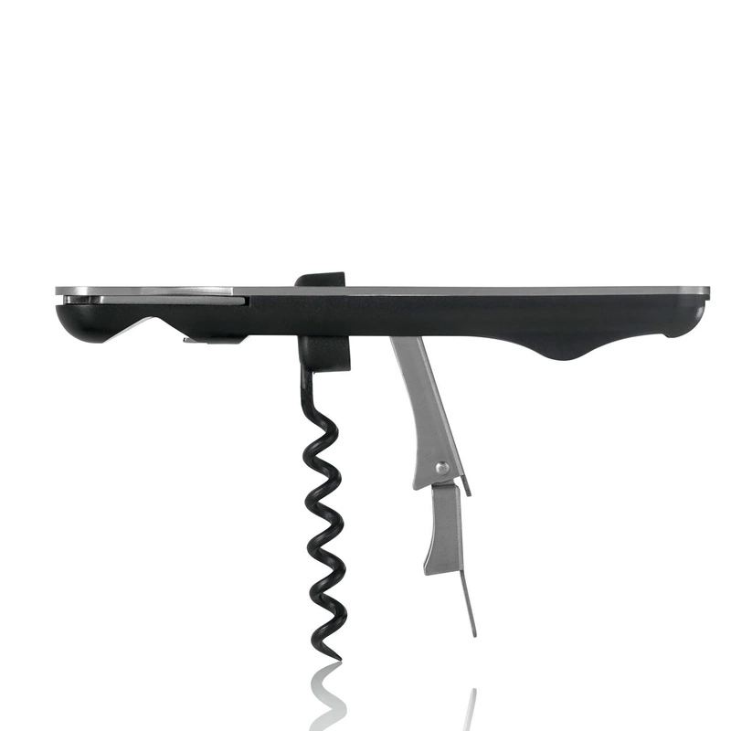 Korkociąg posiada zintegrowany odcinacz do folii i otwieracz butelek.