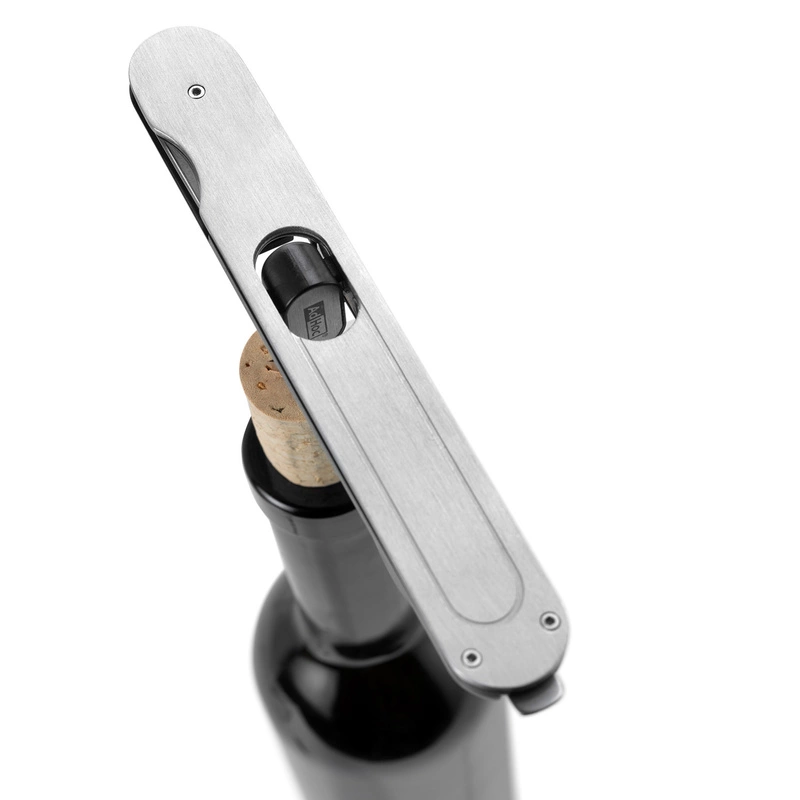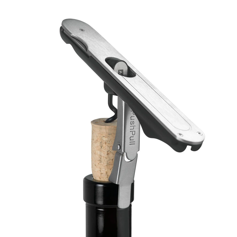 W innych tego typu korkociągach do wyciągnięcia korka niezbędne jest ciągnięcie w górę, natomiast korkociąg PUSHPULL należy nacisnąć i wyciągnąć korek w dwóch krokach.