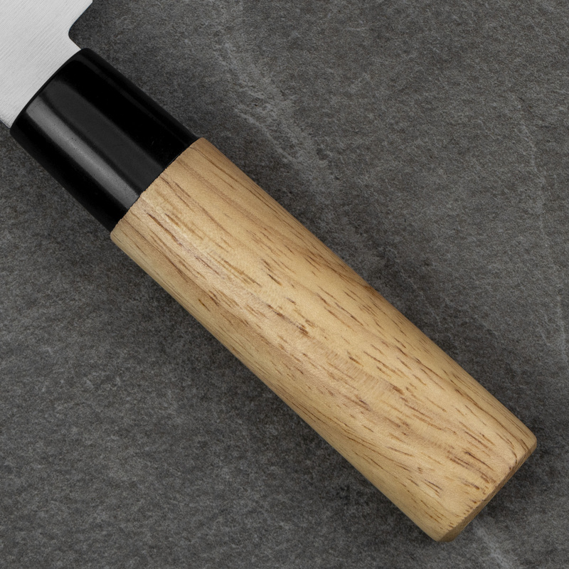Noże Satake Megumi Classic to znakomite wprowadzenie do świata tradycyjnych noży japońskich. Solidne klingi wykonano z wysokowęglowej stali nierdzewnej 420J2, która jest wyjątkowo odporna na korozję i łatwa w ostrzeniu. Klasyczne, okrągłe rękojeści z naturalnego drewna wzmocniono pierścieniem z wytrzymałego tworzywa, który skutecznie zapobiega wysunięciu się klingi. Noże z tej serii świetnie się sprawdzają jako pierwszy krok na drodze do poznawania tajników japońskiej kuchni.