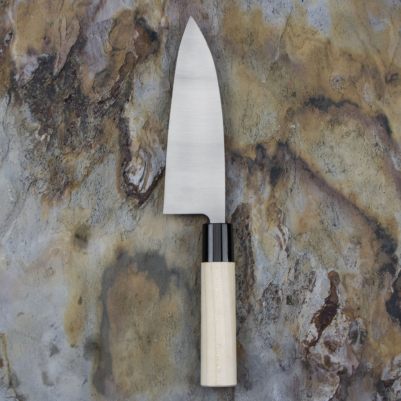 Tradycyjny japoński nóż z grubą, zwężającą się klingą, który służy do odgławiania i filetowania ryb w taki sposób, żeby nie uszkodzić ich delikatnego mięsa. W Japonii bywa często używany do sprawiania mięsa drobiowego, ale nie jest klasycznym tasakiem i nie powinno się nim mocno uderzać. Aby przeciąć ość, wystarczy lekko nacisnąć grzbiet noża i wykonać szybkie, precyzyjne cięcie. Ostry czubek i krótkie ostrze ułatwiają kontrolę ruchów, co jest szczególnie ważne, gdy trzeba dostać się nożem do ciasnych miejsc.
