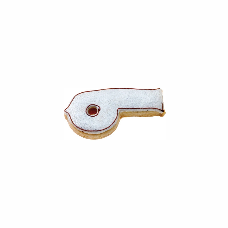 Foremka do wykrawania w kształcie gwizdka Niezbędna w domu każdego kibica Taki wypiek umili smak zwycięstwa i osłodzi gorycz porażki. Elegancka, ręcznie wykonana w Niemczech, perfekcyjnie wykończona foremka ze stali nierdzewnej jest przeznaczona do wycinania ciasteczek i pierniczków z kruchego ciasta. Dzięki wysokiej jakości i odpowiedniej grubości stali foremka jest trwała i nie traci kształtu przy pierwszym użyciu. Można się nią cieszyć przez długi czas. Ostre krawędzie do wycinania umożliwiają dokładne wykrojenie ciasta, a zaokrąglone brzegi są całkowicie bezpieczne dla dłoni. Foremkę można myć w zmywarce. Firma Birkmann stworzyła wyjątkową kolekcję foremek związaną z piłką nożną. W skład kolekcji wchodzą: bramkarz, piłkarz, flaga, gwizdek, puchar, korek i kufel piwa.