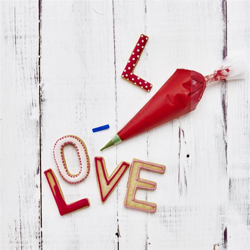 Zestaw do dekoracji wypieków Szczególnie przydatny przy tworzeniu precyzyjnych ozdób i napisów W komplecie: 10 rękawów z polietylenu o długości 21 cm. i pojemności 200 ml., 10 mini tylek z tworzywa sztucznego z zatyczkami (przekrój okrągły). Wytrzymuje temperaturę do 60 st C. Motto produktów z kolekcji Easy Baking to prostota: jajka, masło, cukier i mąka – to podstawowe składniki do pieczenia. Mając je, do osiągnięcia celu brakuje jeszcze tylko odpowiedniej formy do pieczenia! Wszystkie formy Easy Baking zostały wyposażone w niezwykle wytrzymałą powłokę nieprzywieralną, wytwarzaną przez znaną firmę Whitford. W skład kolekcji wchodzą m. in.: tortownice, keksówki, formy do babek oraz wszystkie inne, niezbędne akcesoria do pieczenia.