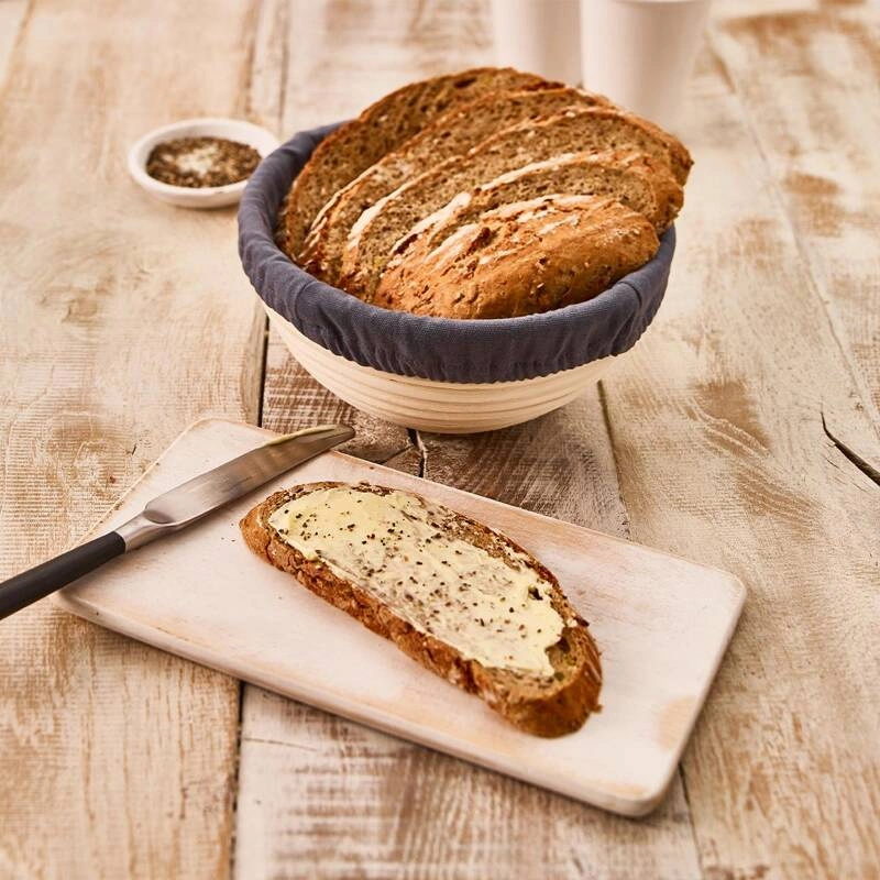 POKROWIEC DO NAŁOŻENIA NA KOSZYK DO WYRASTAJĄCEGO CHLEBA Zyskujemy koszyk do serwowania pieczywa Koszyk do wyrastania pieczywa, dzięki użyciu bawełnianego pokrawca, zyskuje dodatkową funkcję - koszyka do serwowania pieczywa. Świetnie będzie prezentował się na stole. Bawełniany pokrowiec wykończony jest gumką, aby lepiej trzymał się na koszyku. Pokrowiec można prać w temperaturze 30 st. C. Pokrowiec pasuje do produktu o kodzie 208 964: Koszyk do wyrastającego chleba - okrągły 18 cm / Birkmann