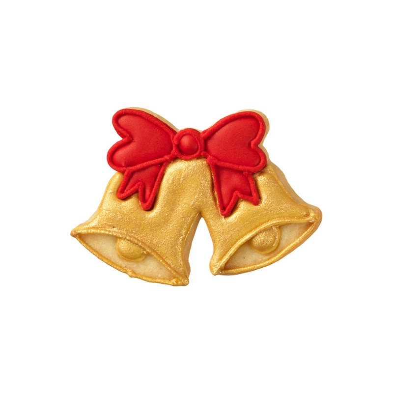 PODWÓJNE DZOWNECZKI Z KOKARDĄ Do wycinania pierniczków i ciasteczek z kruchego ciasta Formemka wykonana ręcznie, perfekcyjnie wykończona. Ostre krawędzie do wycinania umożliwiają dokładne wykrojenie ciasta, a zaokrąglone brzegi są całkowicie bezpieczne dla dłoni. Bez problemu wytniemy nią świąteczne pierniczki oraz ciasteczka. Można myć w zmywarce.