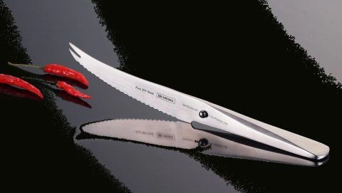 Nóż do warzyw i owoców z serii Type 301 japońskiej marki Chroma.Noże zaprojektowane przez Ferdynanda Porsche, docenione przez najlepszych kucharzy na świecie. Ząbkowane ostrze bez najmniejszych problemów poradzi sobie z każdą skórką owocu lub warzywa.