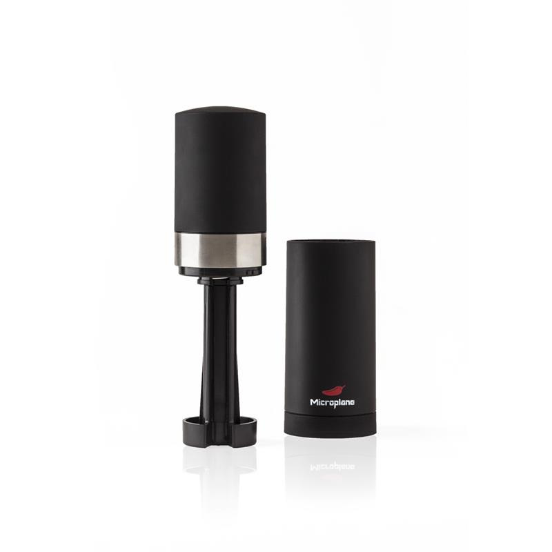 Młynek przeznaczony do mielenia suszonych papryczek chili Niezbędny przy przygotowywaniu pikantnych dań Młynek o prostym, nowoczesnym designie świetnie poradzi sobie z suszonymi papryczkami chili. Wystarczy ruch nadgarstka - i gotowe. Młynek wyposażony jest w silikonowa zatyczkę, która pełni funkcję dna młynka i ochraniacza na ostrze. Jednocześnie zapobiega opadaniu resztek zmielonej przyprawy po odstawieniu młynka. Z tarkami i młynkami Microplane ścieranie, dotychczas męczące, teraz nie wymaga użycia dużej siły i staje się przyjemne. Zapewniają to: wygodny uchwyt, idealnie pasujący do dłoni, lekkość narzędzi i ich niezwykła ostrość. Ścierany produkt nie jest rozrywany ani strzępiony, zachowuje smak i aromat. Sekret ostrości ostrzy Microplane tkwi w autorskiej technologii fototrawienia, w której do uzyskiwania powierzchni tnących wykorzystuje się środki chemiczne. Łatwy demontaż i czyszczenie. Można myć w zmywarce na górnej półce, jednak w celu zachowania najlepszych właściwości tnących zaleca się mycie ręczne. Sposób użycia: Po przekręceniu i uniesieniu górnej części młynka, należy umieścić w pojemniku przyprawy, a następnie je docisnąć. Przez obracanie praski - w prawo - przyprawy zostaną starte za pomocą ostrego stalowego ostrza. Patrz zamieszczony poniżej film.