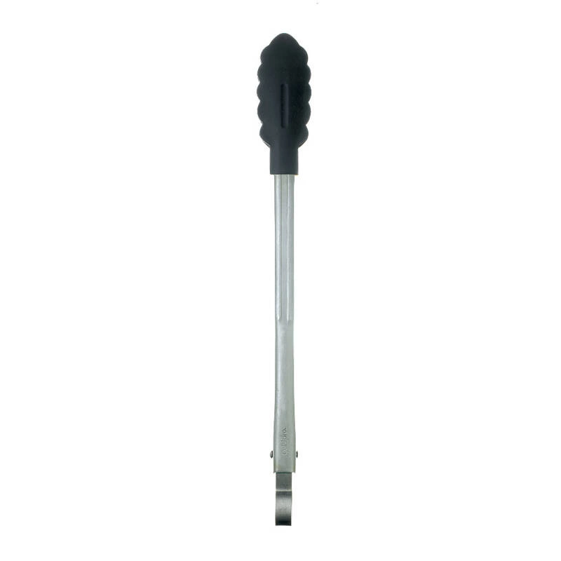 Silikonowe szczypce 30,5 cm Cuisipro do gotowania, smażenia i łatwego serwowania dań wykonane są ze stali nierdzewnej i czarnego silikonu odpornego na temperaturę do 220o C. Szczypce posiadają opatentowany mechanizm blokujący push/pull, który sprawia, że z łatwością otworzysz i zamkniesz je jedną ręką.