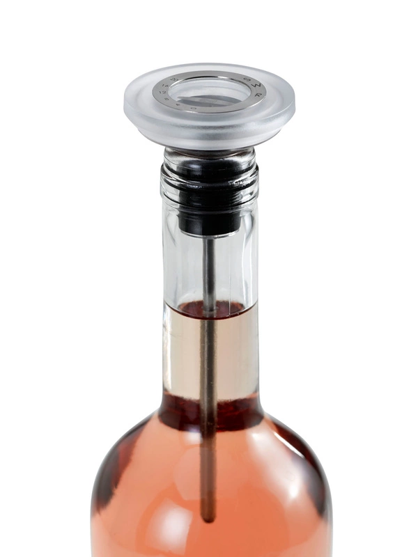 Ciekawe narzędzie umożliwiające pomiar temperatury, nalanie bez kapania i hermetyczne zamknięcie wina.