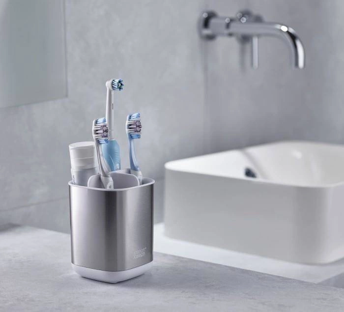 - praktyczny pojemnik do przechowywania przyborów łazienkowych: szczoteczek (tradycyjnych oraz elektrycznych) oraz pasty do zębów,