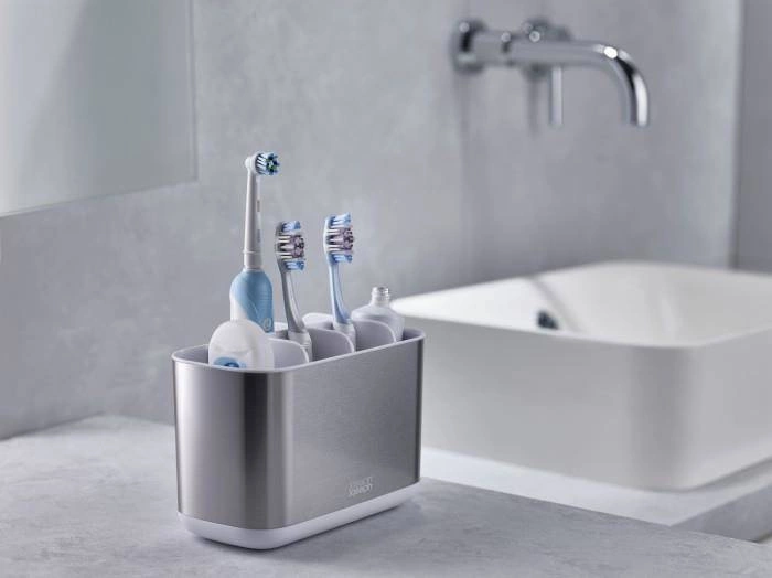 - szeroki pojemnik na szczoteczki do zębów (zwykłe i elektryczne) i pasty,