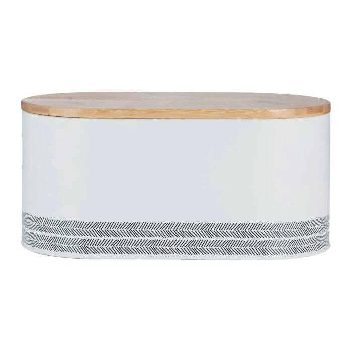 - chlebak w białym kolorze, - wykonany ze stali, - w komplecie przykrywka bambusowa, która jest jednocześnie deską, - przeznaczony do mycia ręcznego. Wymiary: 16 x 34 x 17,5 cm (wys. x dł. x szer.) Pojemność: 7,5 l Materiał: malowana stal, bambus Kolor: biały, beż Kolekcja: Monochrome